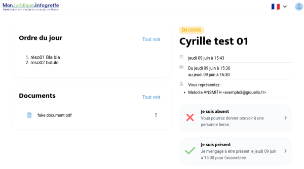 Le quorum et la majorité sont configuré pour toute l'AG, on ne peut pas le faire pas résolution.