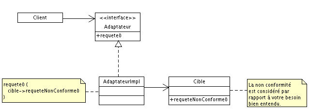 Pour des raisons de conformité à une norme, pour ne pas dépendre d'une implémentation, pour permettre l'évolution de votre projet, il arrive que vous ayez besoin de vous reposer sur une interface ou une API qui n'est pas précisément celle qui vous est fournie. Ce design pattern vous propose de pallier cette problématique.