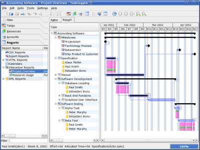 Clocking IT - Overview, interactive Gantt, tasklist, files, timesheet report